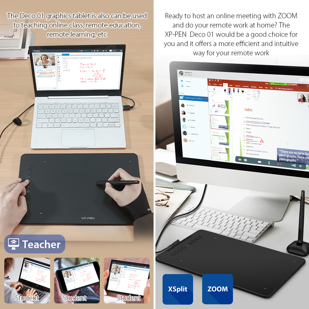 The Deco 01's expansive tablet is big and brilliant, yet still designed to break through the limit between express keys and drawing area. The special squares design on the back and side states a retro fashion.