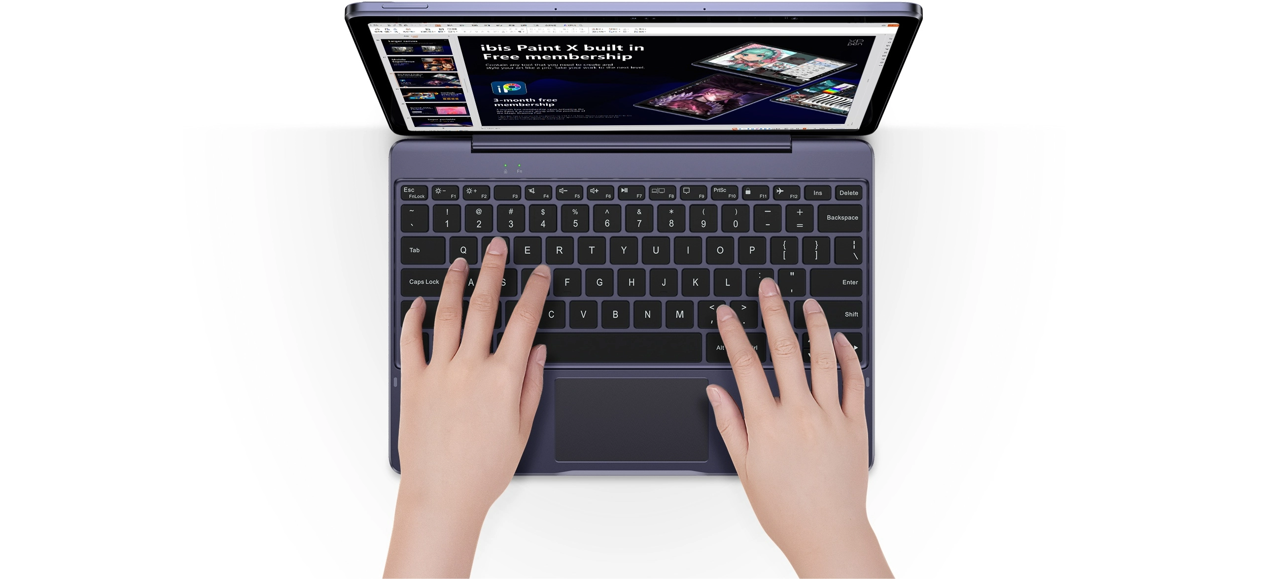 The full-sized keyboard provides a PC-like typing experience with excellent rebound feedback.