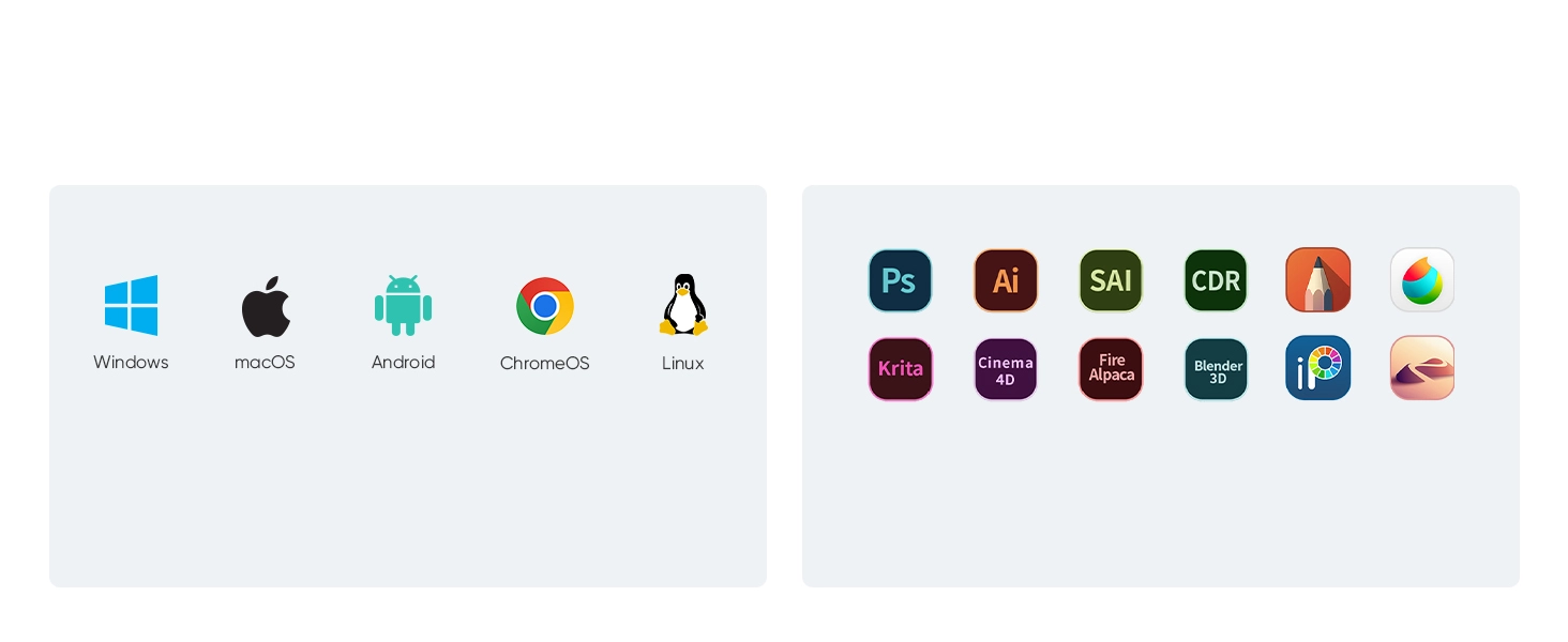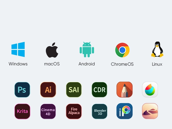 Compatible with popular digital art software such as Adobe Photoshop, Illustrator, SAI, CDR, Clip Studio Paint, GIMP, Krita, MediBang, FireAlpaca, Toonboom, Maya, and Blender3D, etc.